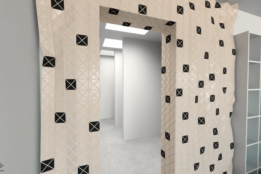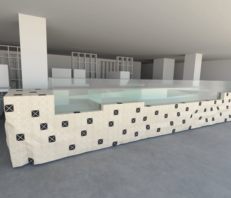 My role involved digitally modeling these intricate patterns and forms, enabling them to be accurately reproduced during installation. This process required not only deep expertise in rigid origami mathematics but also the ability to align the material's physical properties with digital algorithms—a blend of theoretical precision and practical understanding.