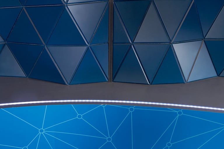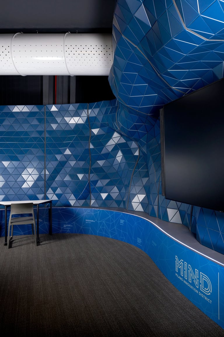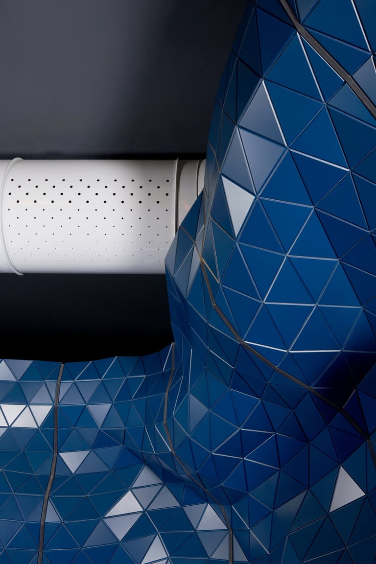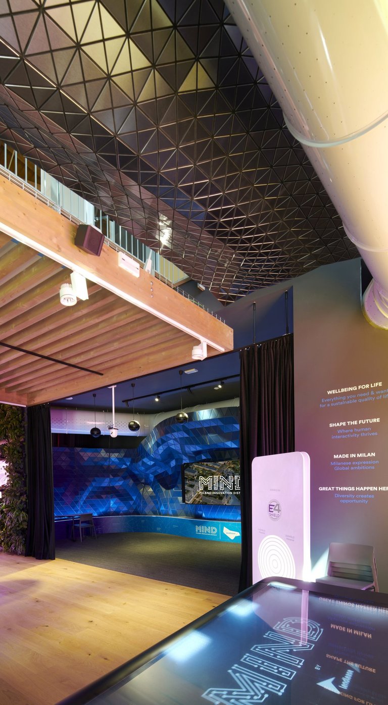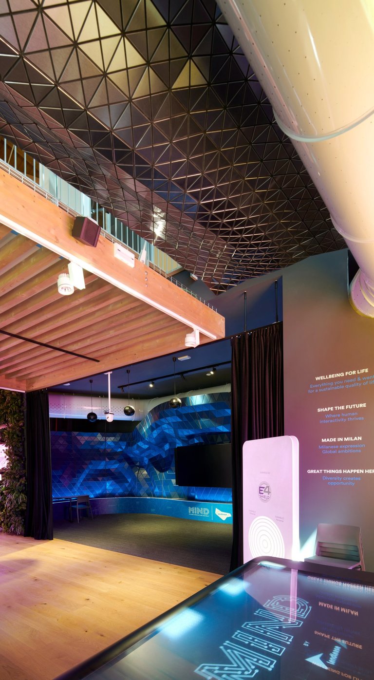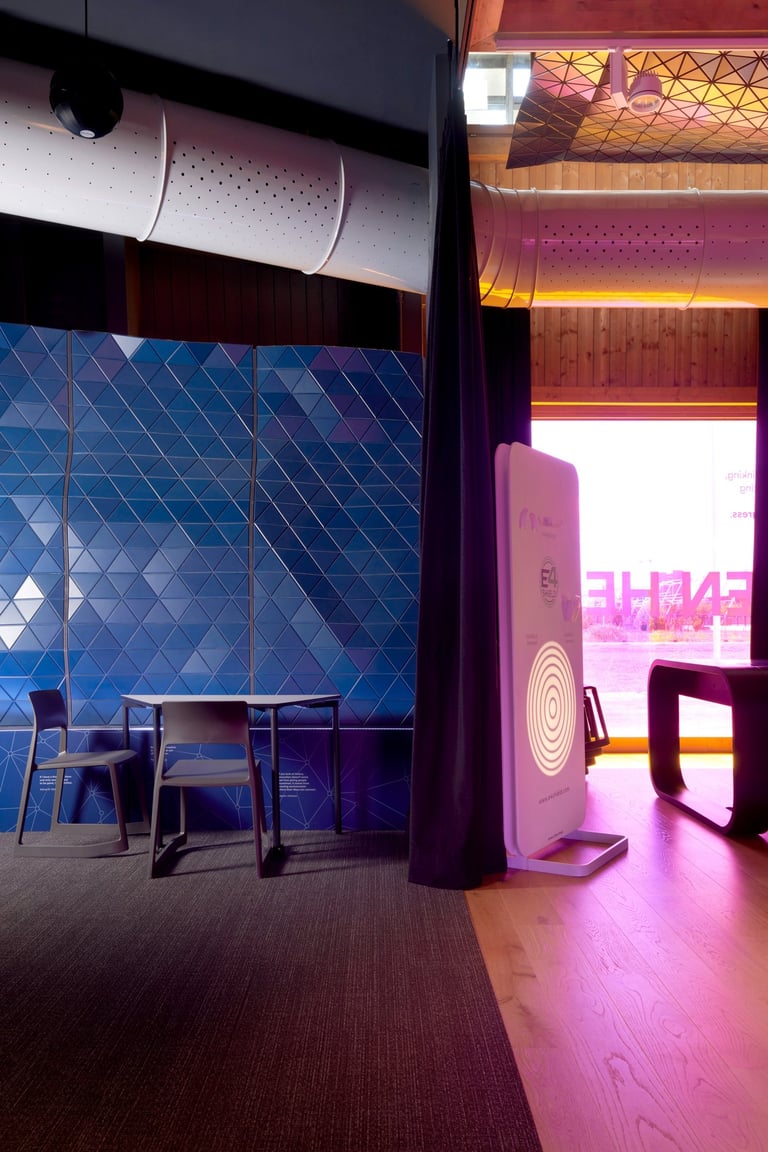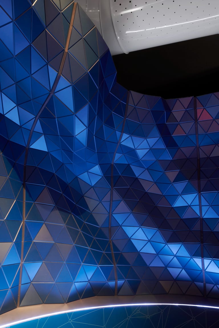 The ceiling element at the pavilion entrance also reflects this blend of innovation and modularity — a testament to advanced mathematics meeting architectural art.