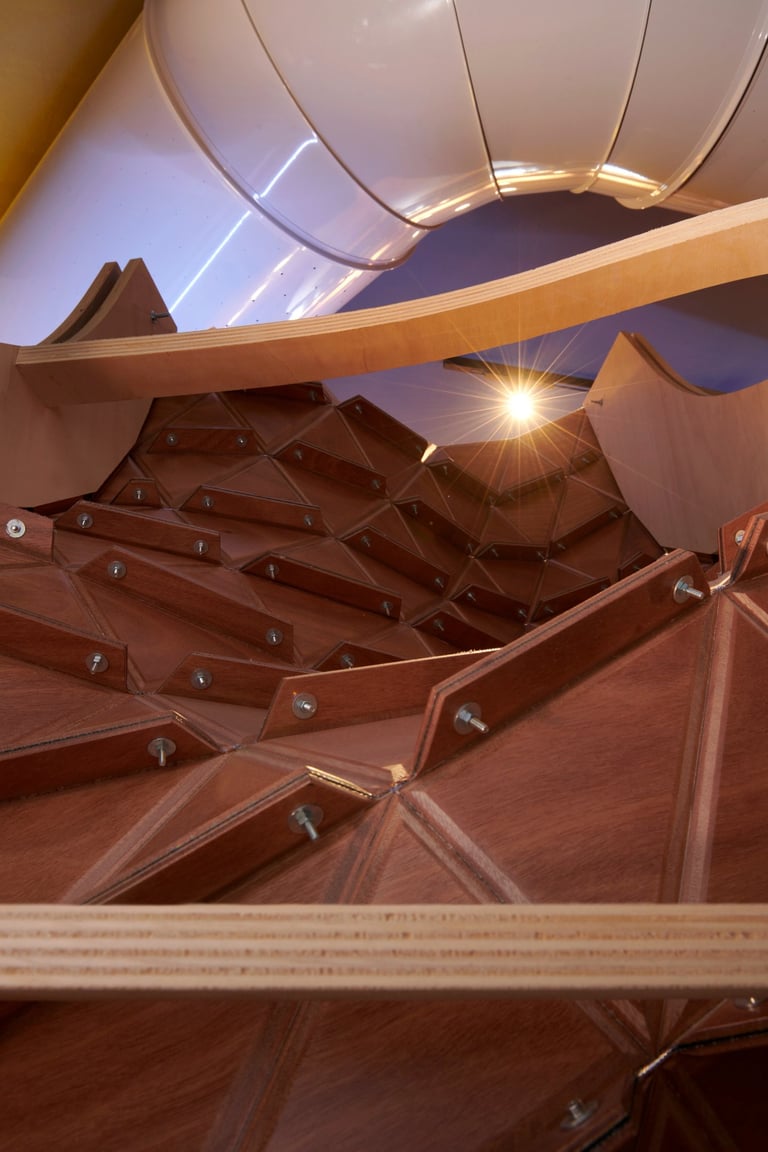 The result is a lightweight, 40-sq/m modular surface composed of unique, three-dimensional segments. Using a dry assembly technique, the entire structure can be disassembled and reconfigured, creating flexibility in reuse.