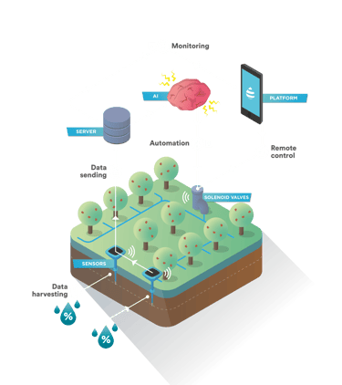 Revotree integrated easy-to-install soil probes, weather stations, and valves through a device management and control platform. My role was exactly developing these systems, both for the MVP product and for the industrialized future release.