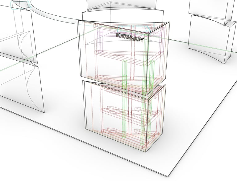 I personally curated the overall modeling and engineering of the exhibitor rack you see in the pictures below.